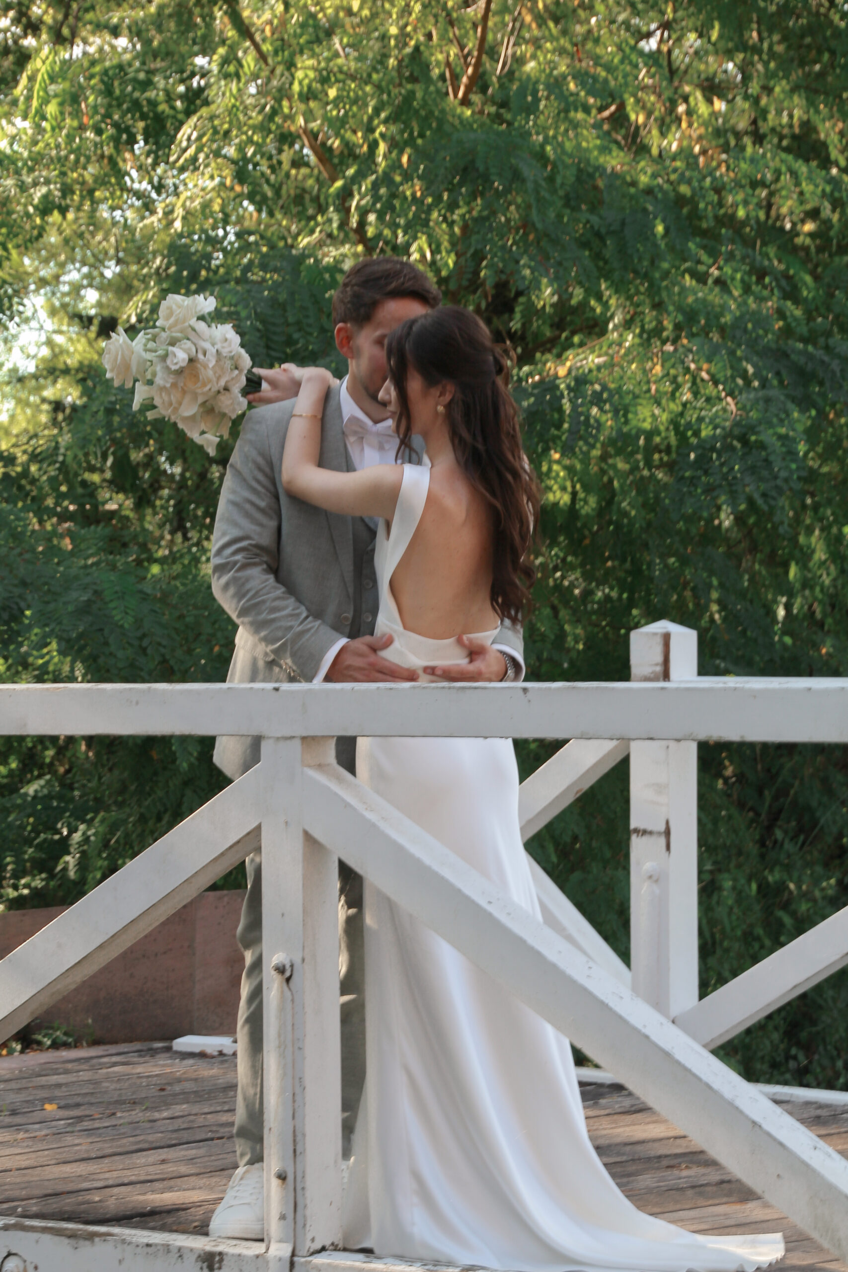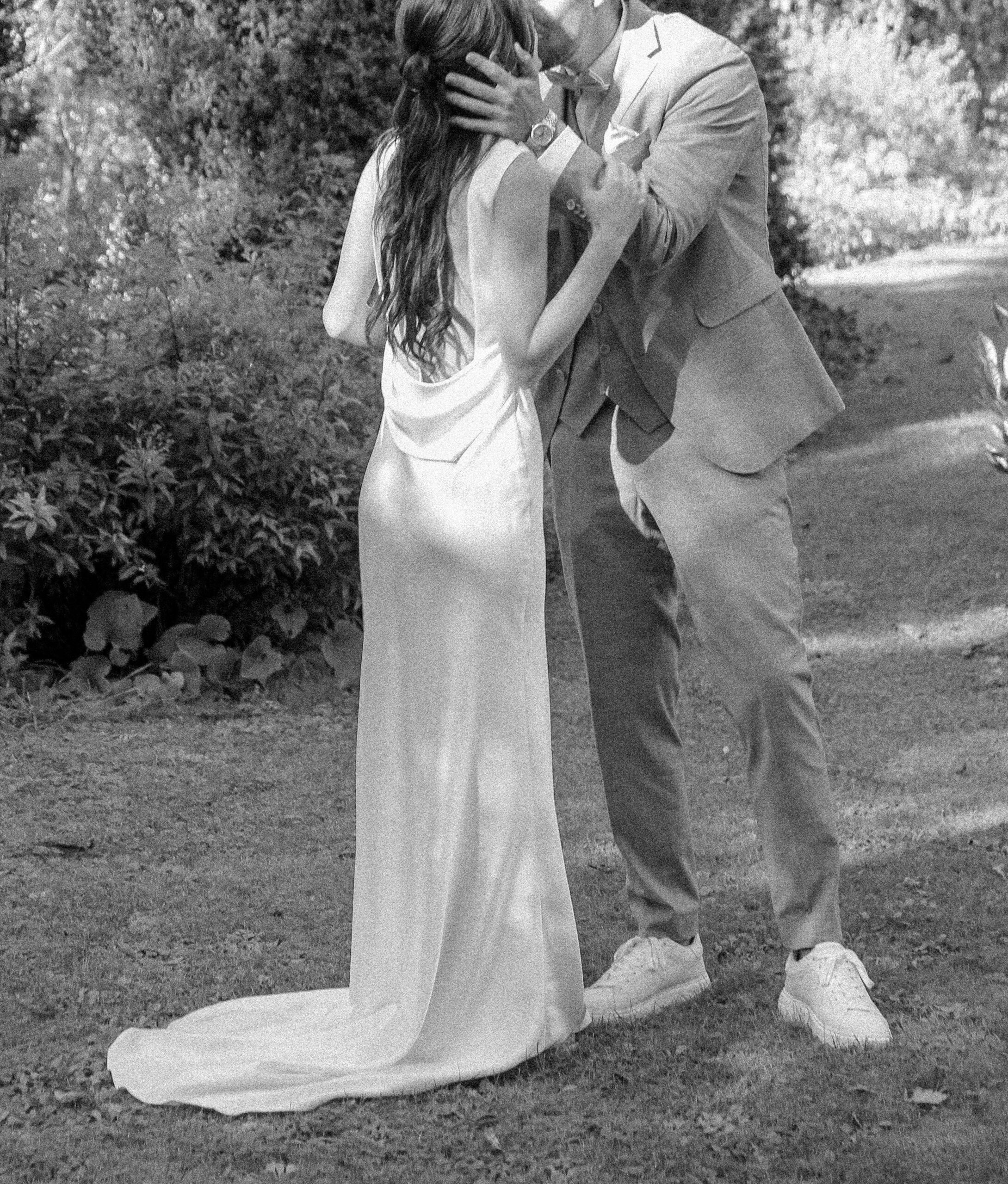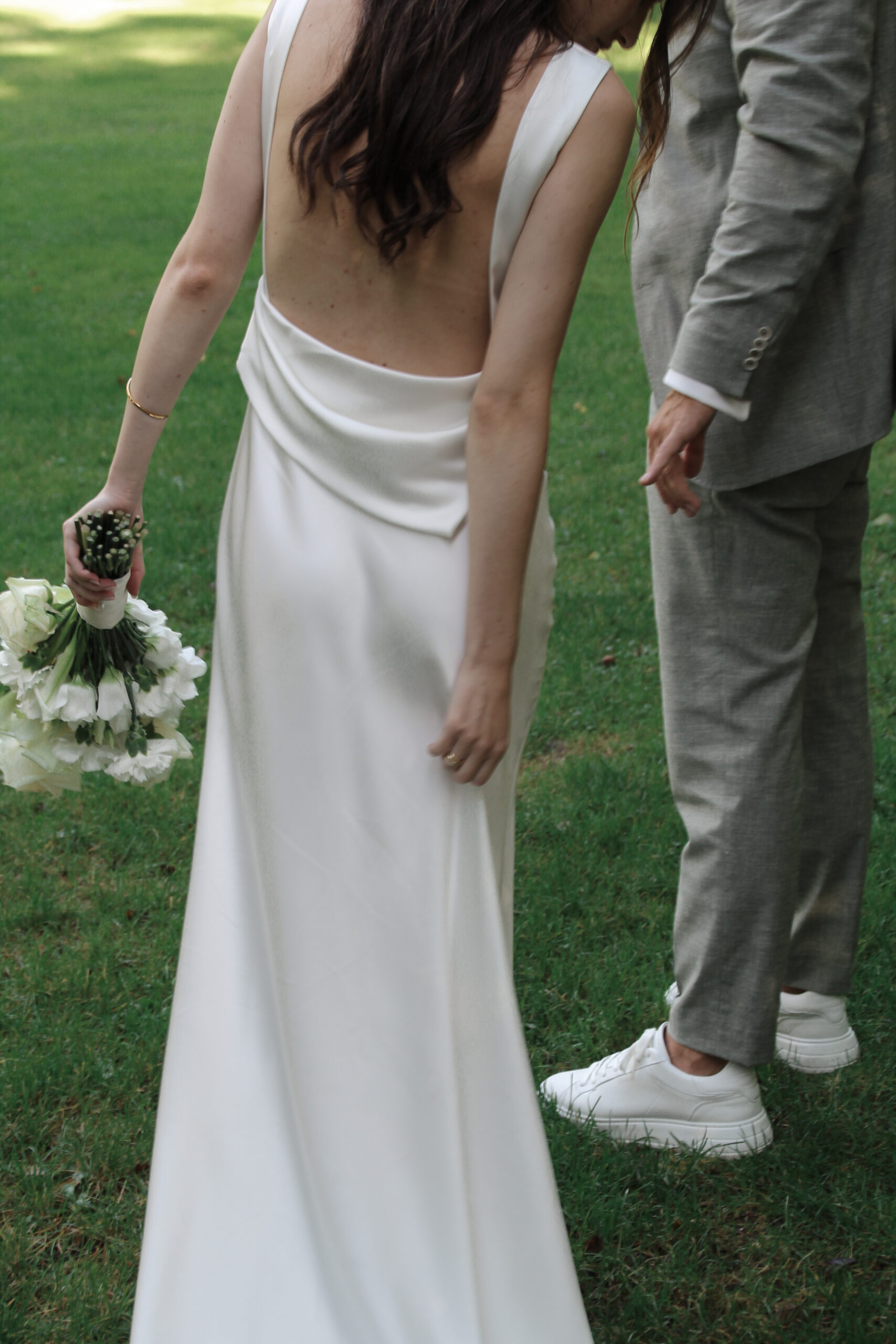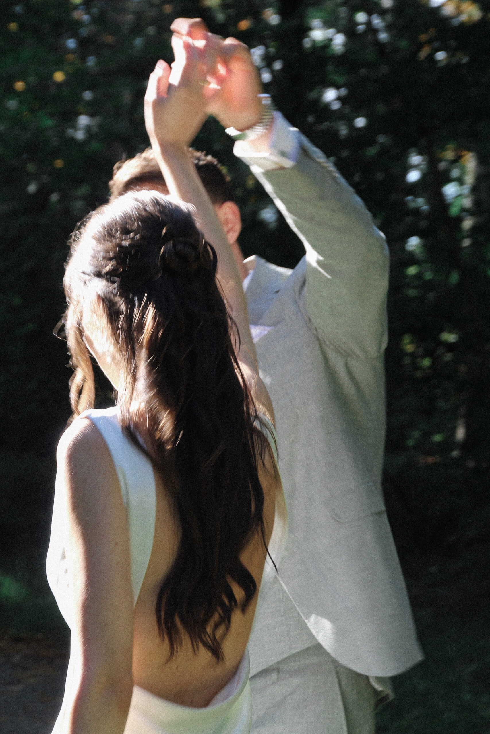 The wedding party has already started. We sneaked out for a bit. The freshly married couple stumbled into this scene, as they danced in their very own world through the wet grass. She was barefoot. He was holding the bridal train of her dress. Just like two little kids having fun doing whatever they are doing. Pure lightness. Ease.