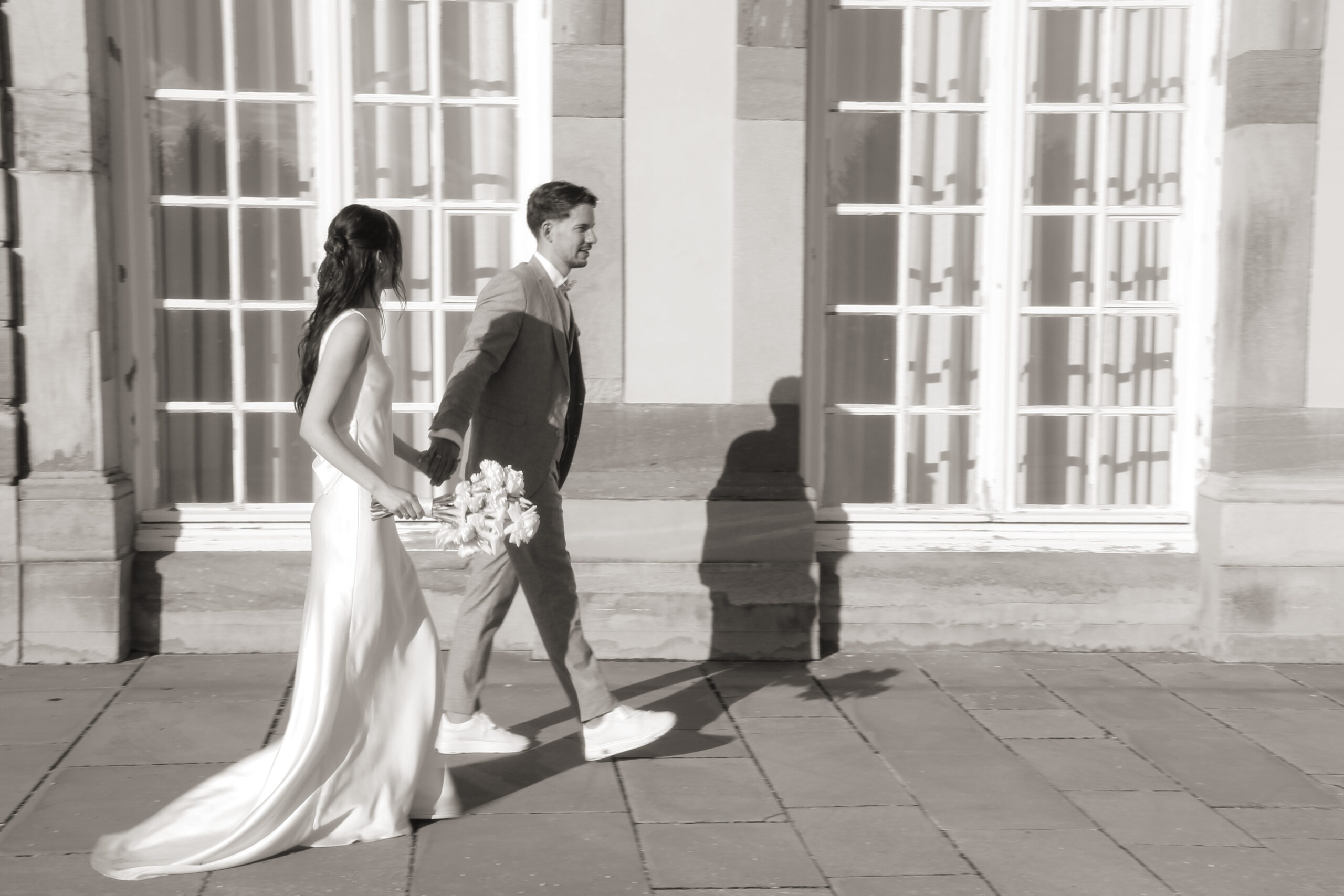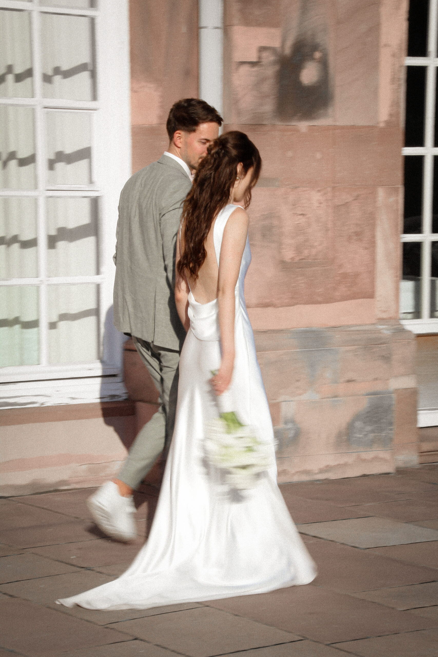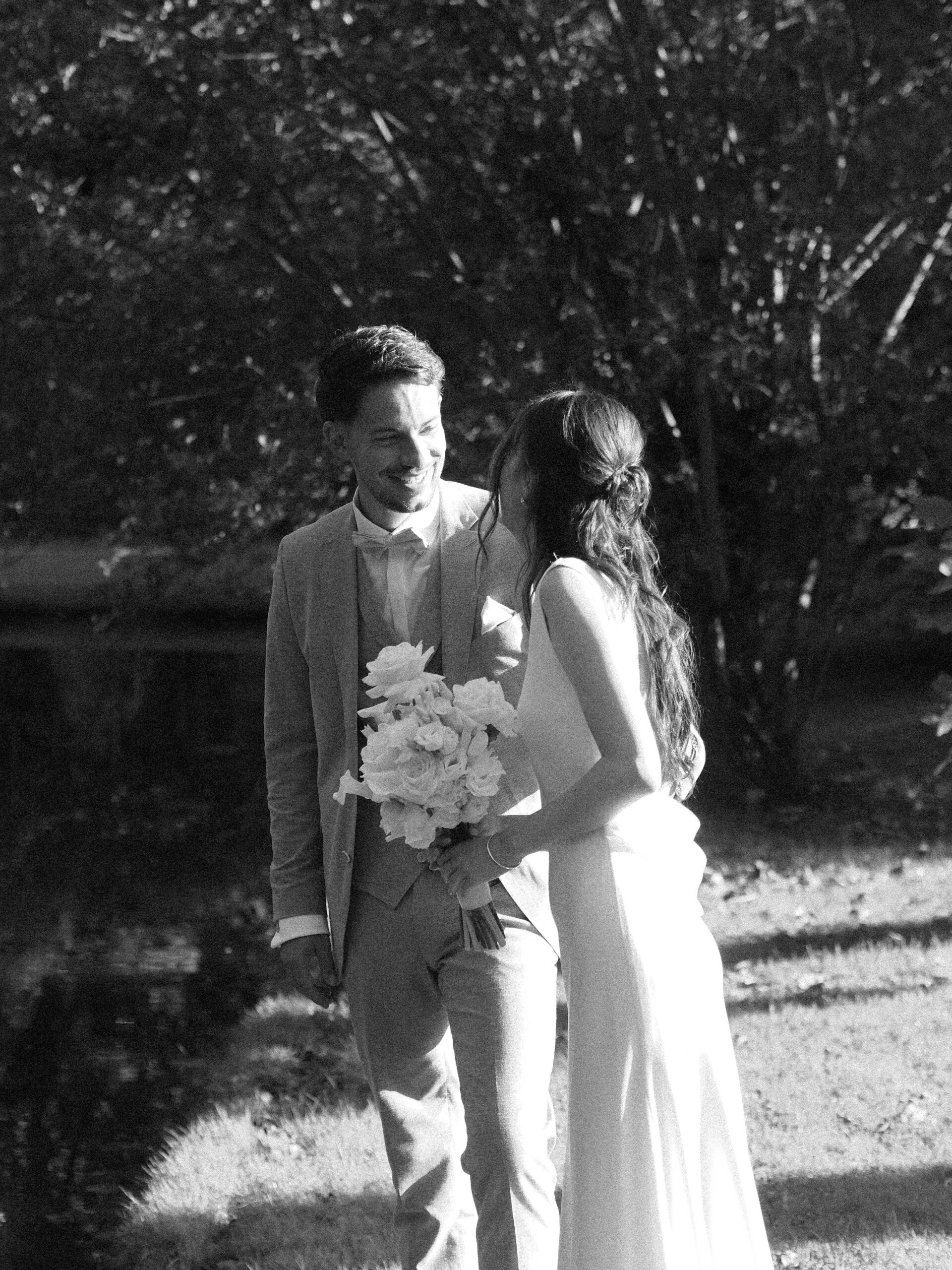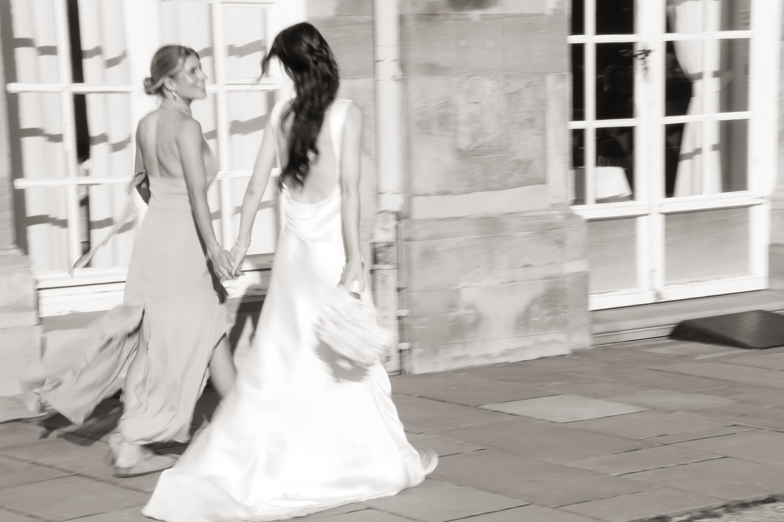 The wedding party has already started. We sneaked out for a bit. The freshly married couple stumbled into this scene, as they danced in their very own world through the wet grass. She was barefoot. He was holding the bridal train of her dress. Just like two little kids having fun doing whatever they are doing. Pure lightness. Ease.
